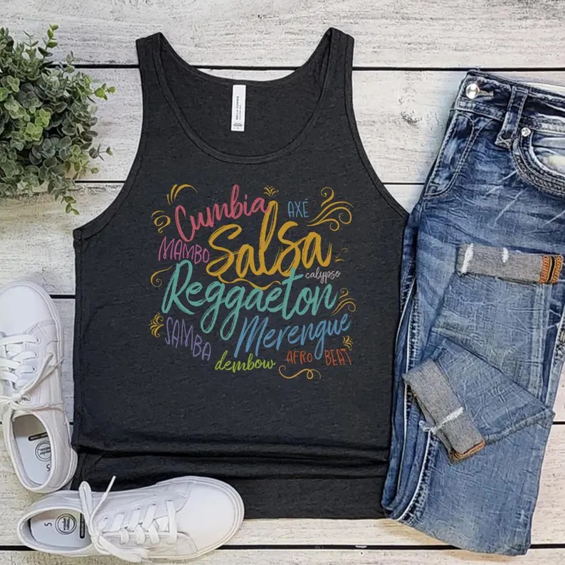 I have recently opened an Etsy store, Salty + Sweet, with a friend and fellow Zumba instructor, Stephanie. It’s been a lot of fun learning about graphic design and print on demand. Because we are both Zumba instructors and LOVE TO DANCE, we have many products that are Zumba class ready. My favorite design that Steph made is one with many rhythms that we dance to all of the time…